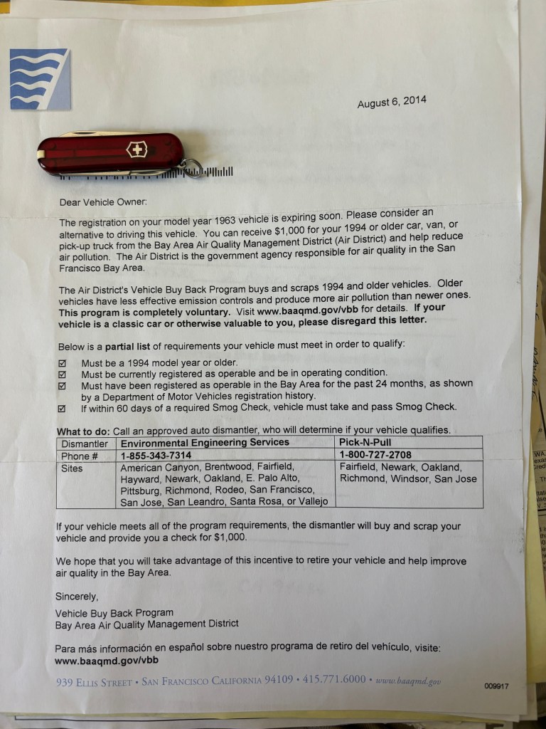 That’s about it! Ask questions at studbkr@yahoo.com, or text me at 408-202-8170. The car is located 5 miles north of San Jose, California.