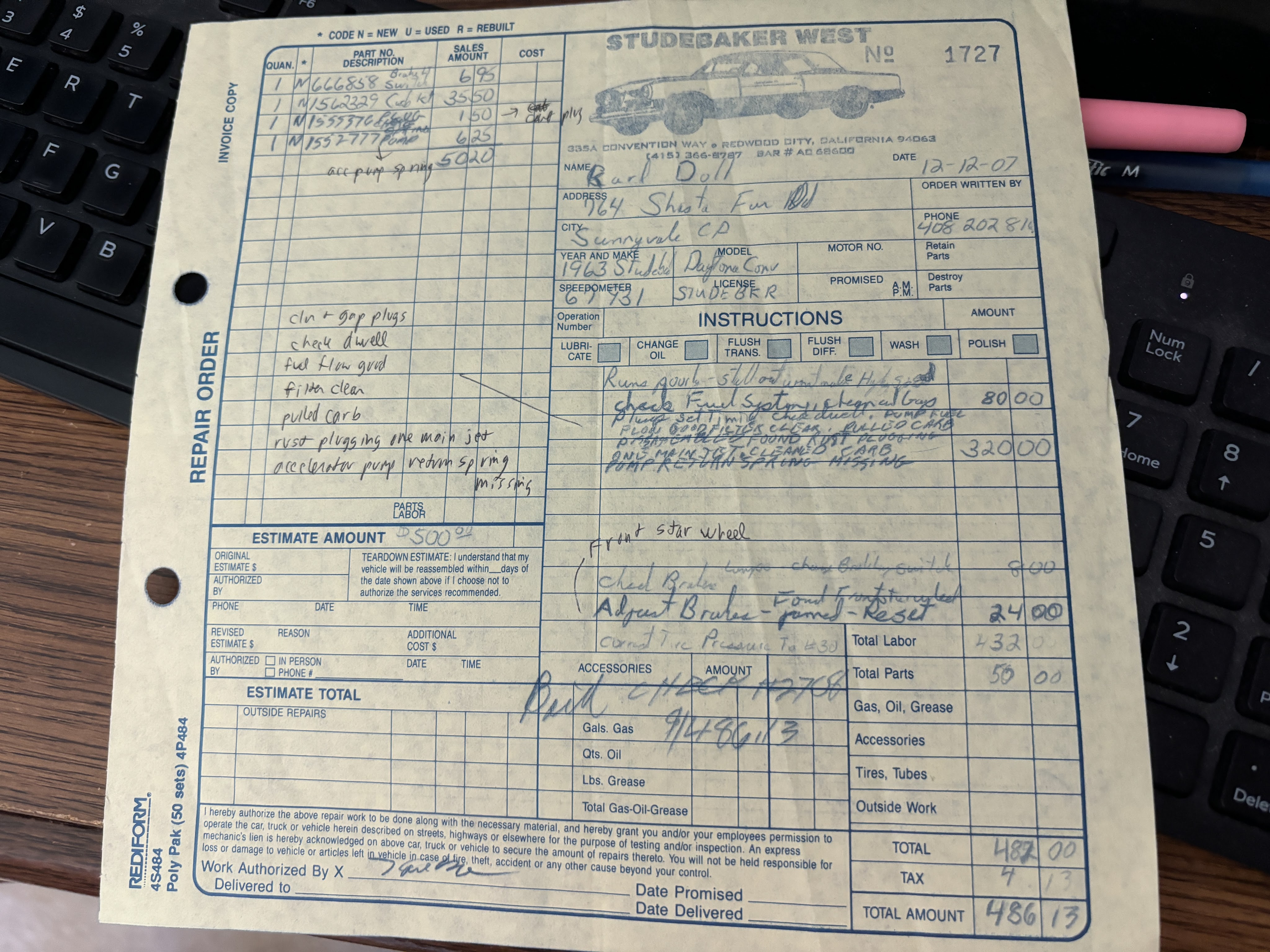 That’s about it! Ask questions at studbkr@yahoo.com, or text me at 408-202-8170. The car is located 5 miles north of San Jose, California.