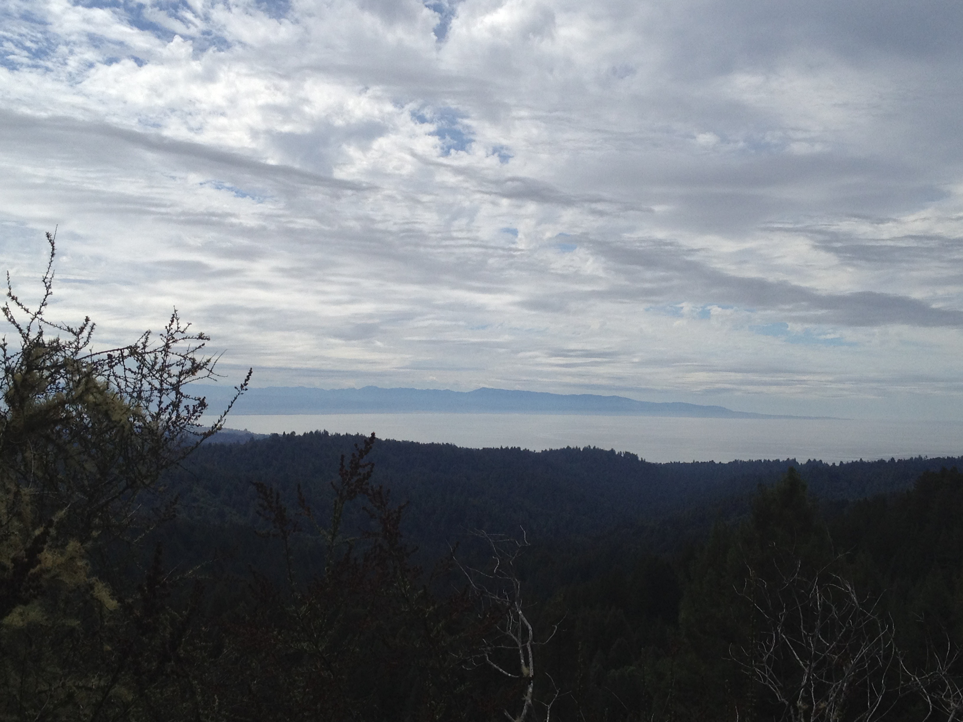 Occasional views through the trees on the ridge included this sweeping view of Monterey Bay and the Monterey Peninsula to the left and on the horizon.