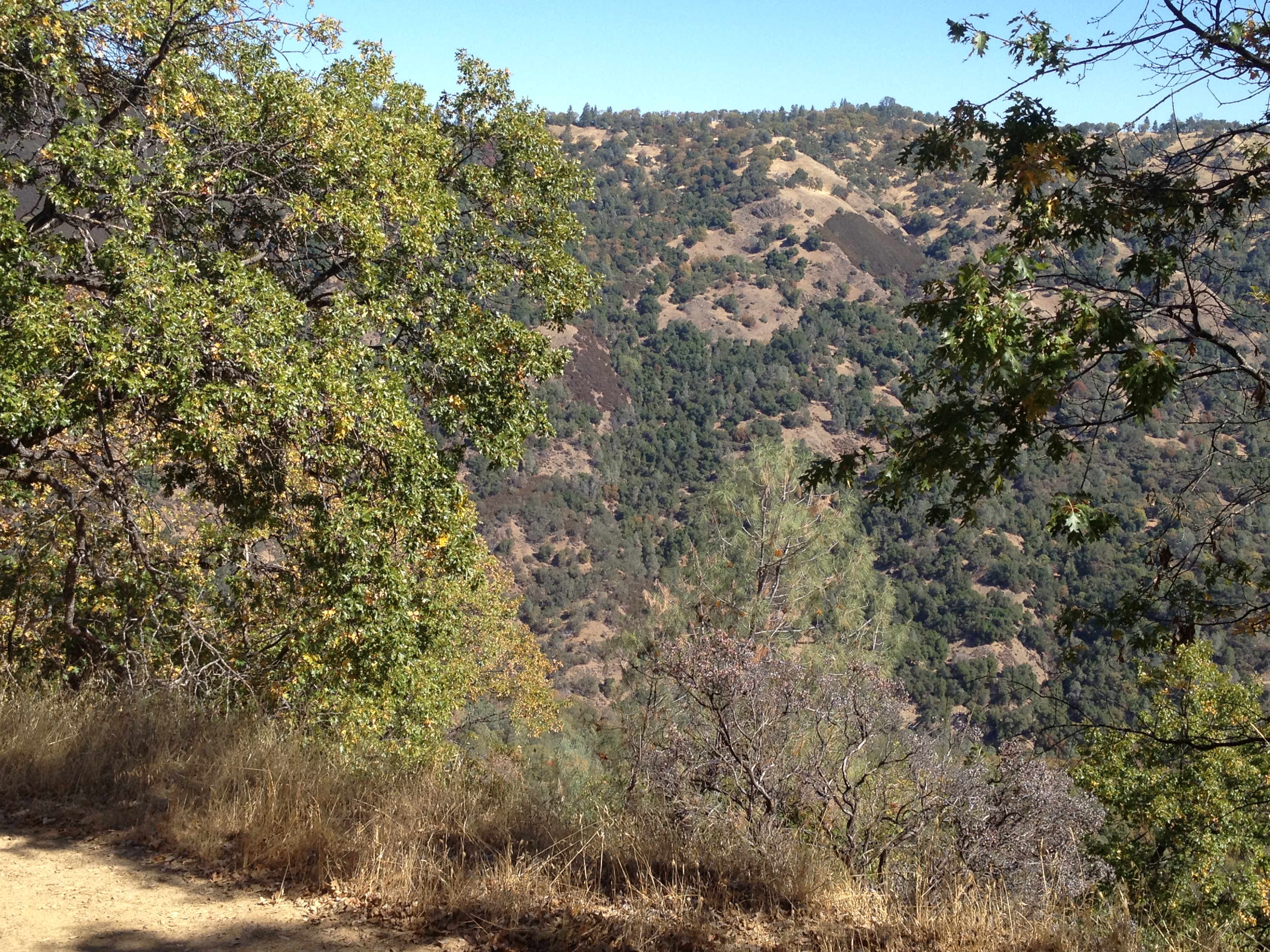 Top of the single-track “Jackass Trail”. Note that this area burned in 2007. The smaller plants are doing well amidst the larger burned bushes and trees.