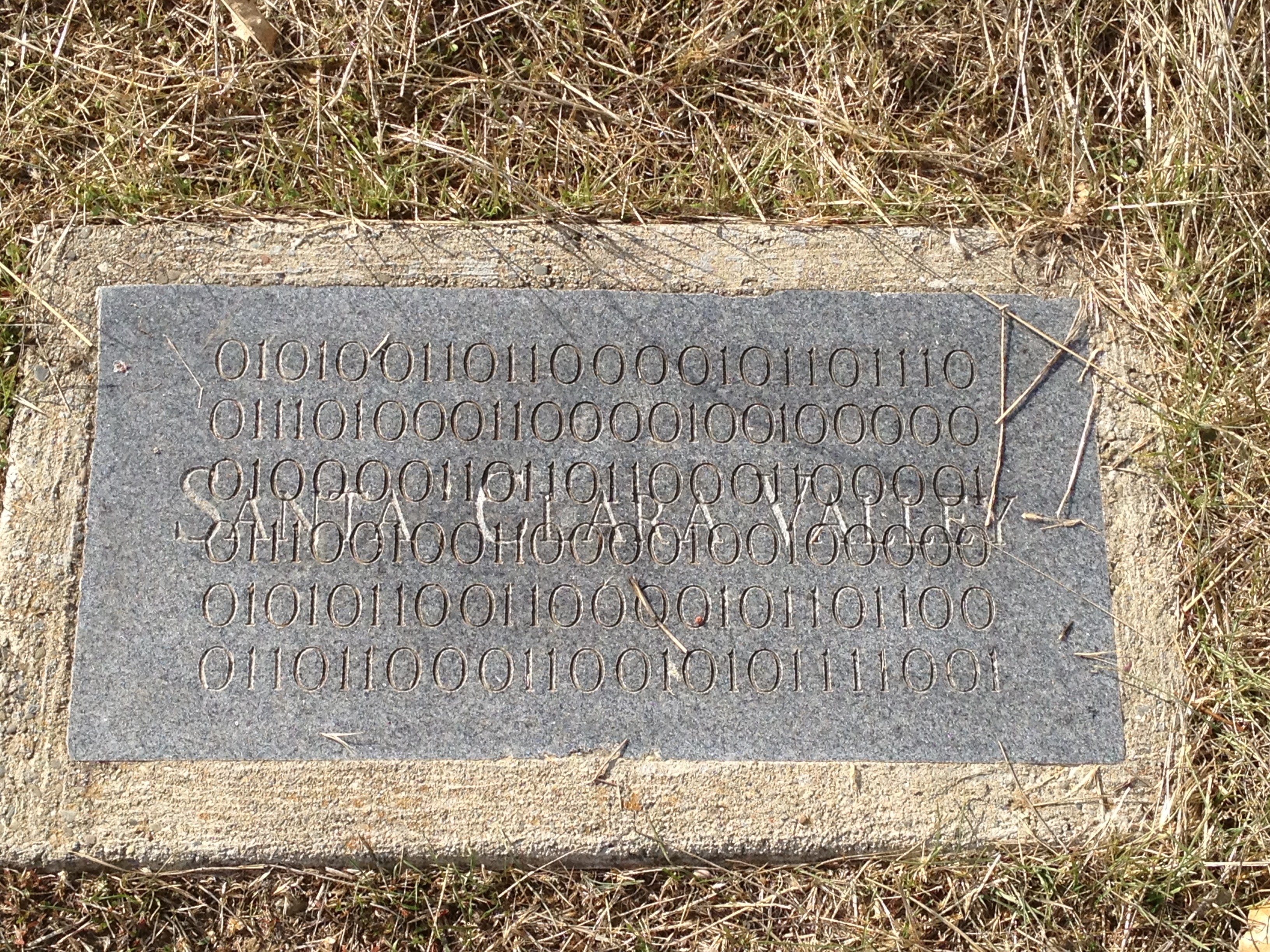 This is ASCII for “Santa Clara County”, I believe. I heard it was placed at the geographical center of the county by some IBM engineers. (Note the faint background alphabetical lettering at the center)