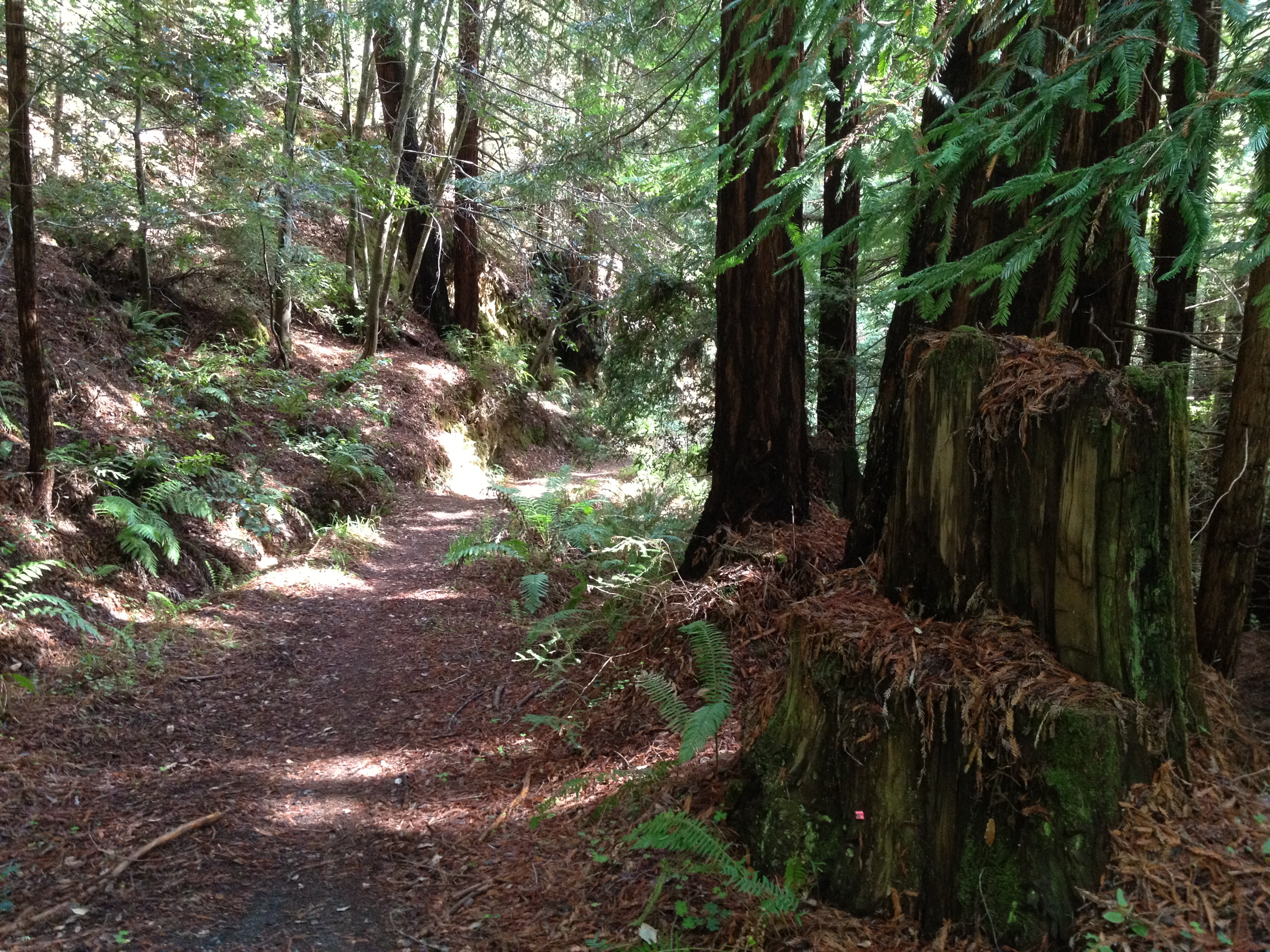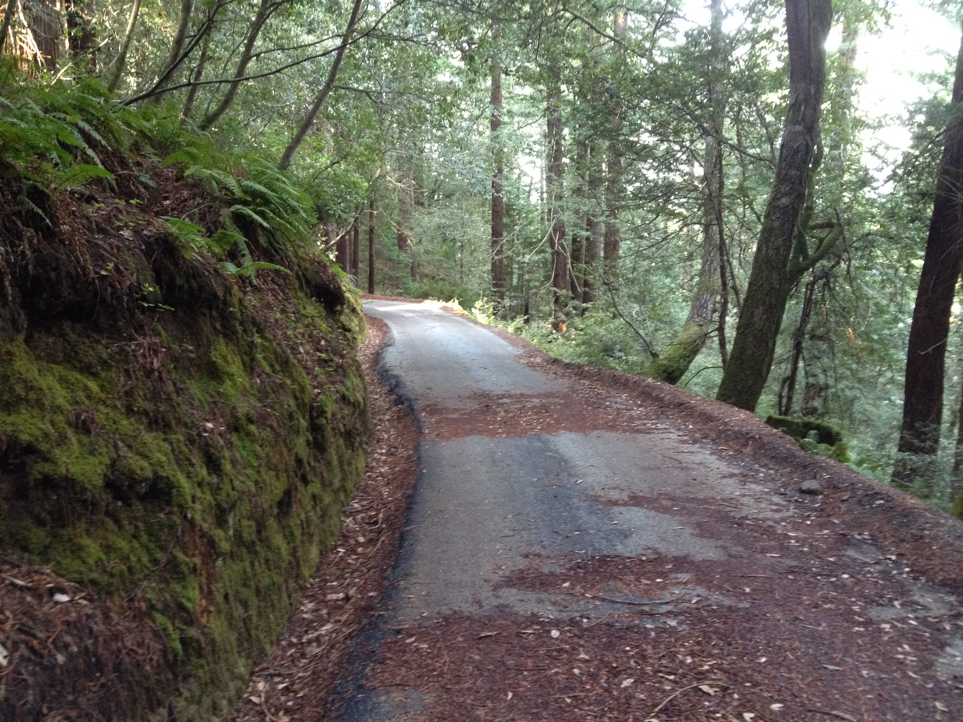 Two steep dead-end hillclimbs done (in the “granny gear”), now for 5 miles of damp, humid, off-road redwood goodness!
