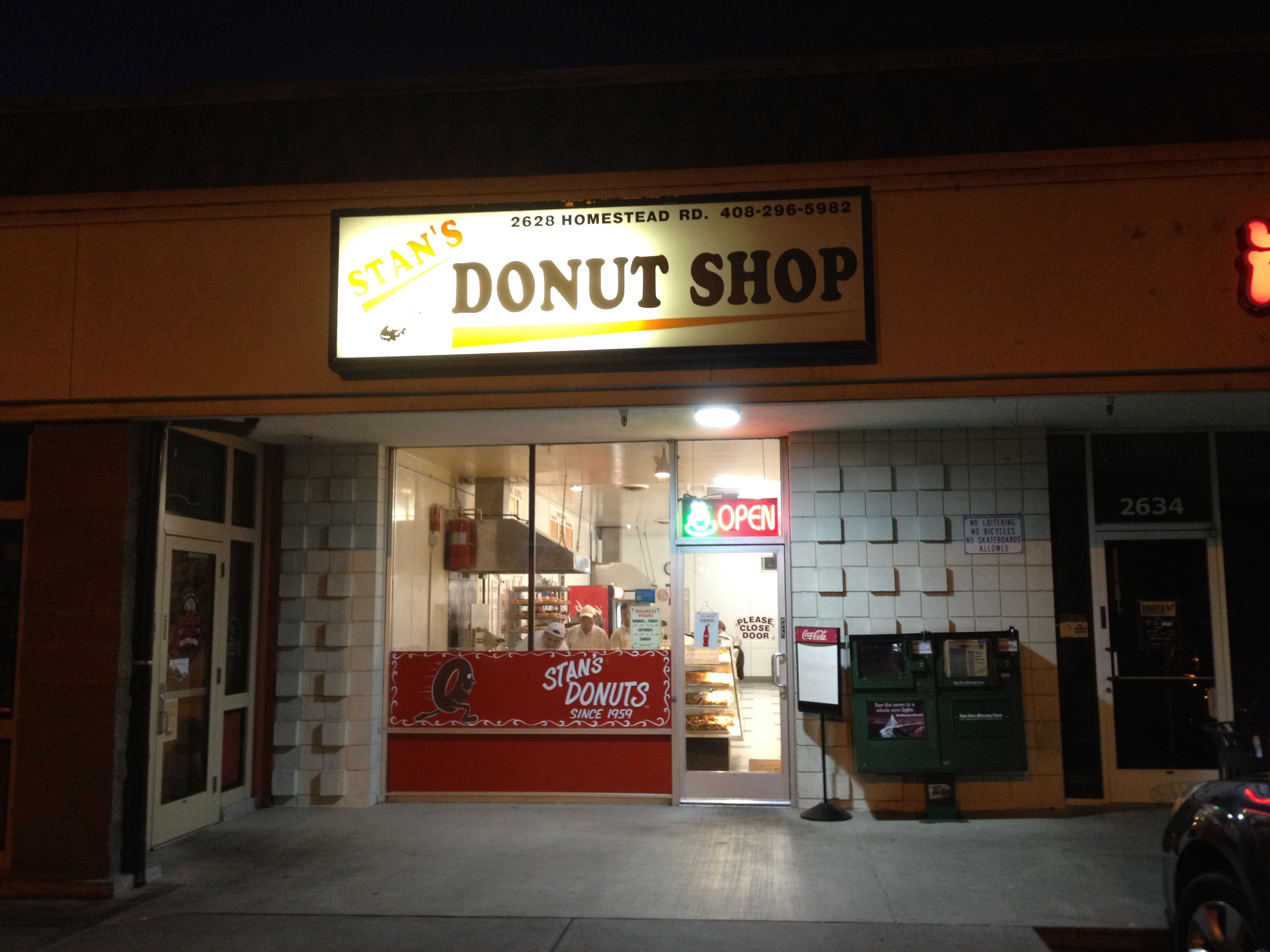 Stan’s Donuts, 2628 Homestead Rd, Santa Clara, CA 95051 (near San Tomas Expressway. At the left end of the Safeway plaza, across from the Santa Clara Library)