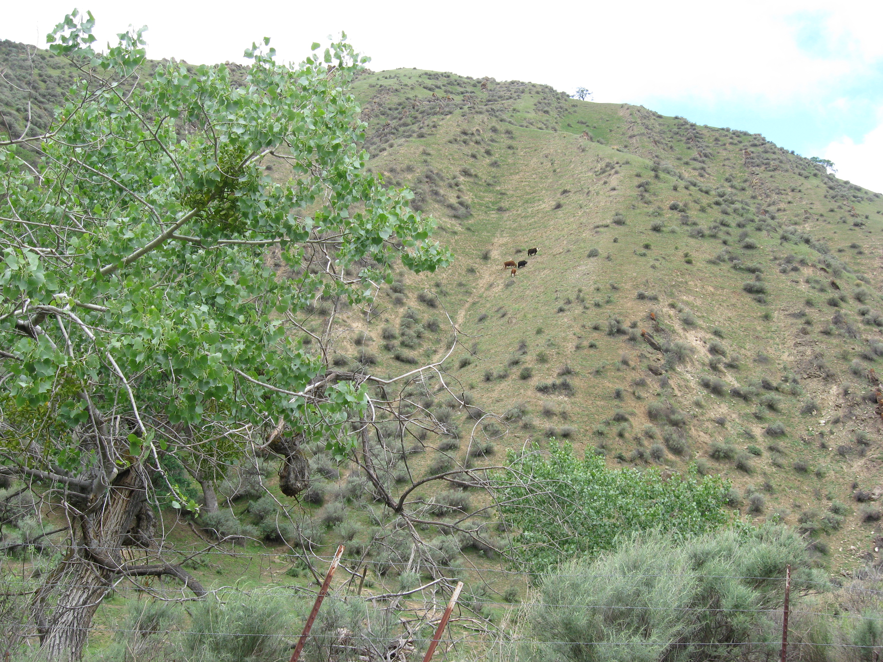 I turned right, towards Patterson, spotting some cows barely hanging onto a steep hillside