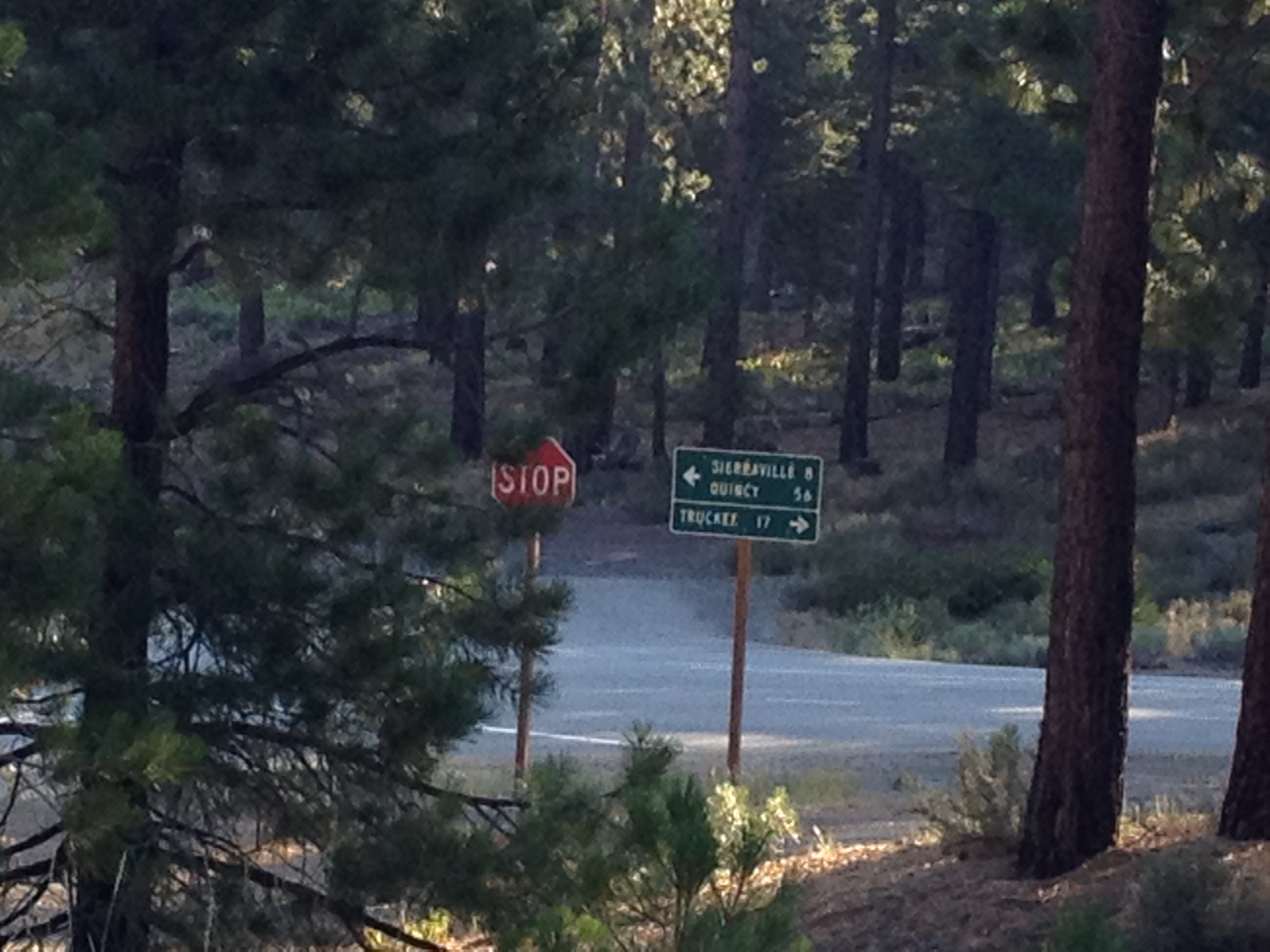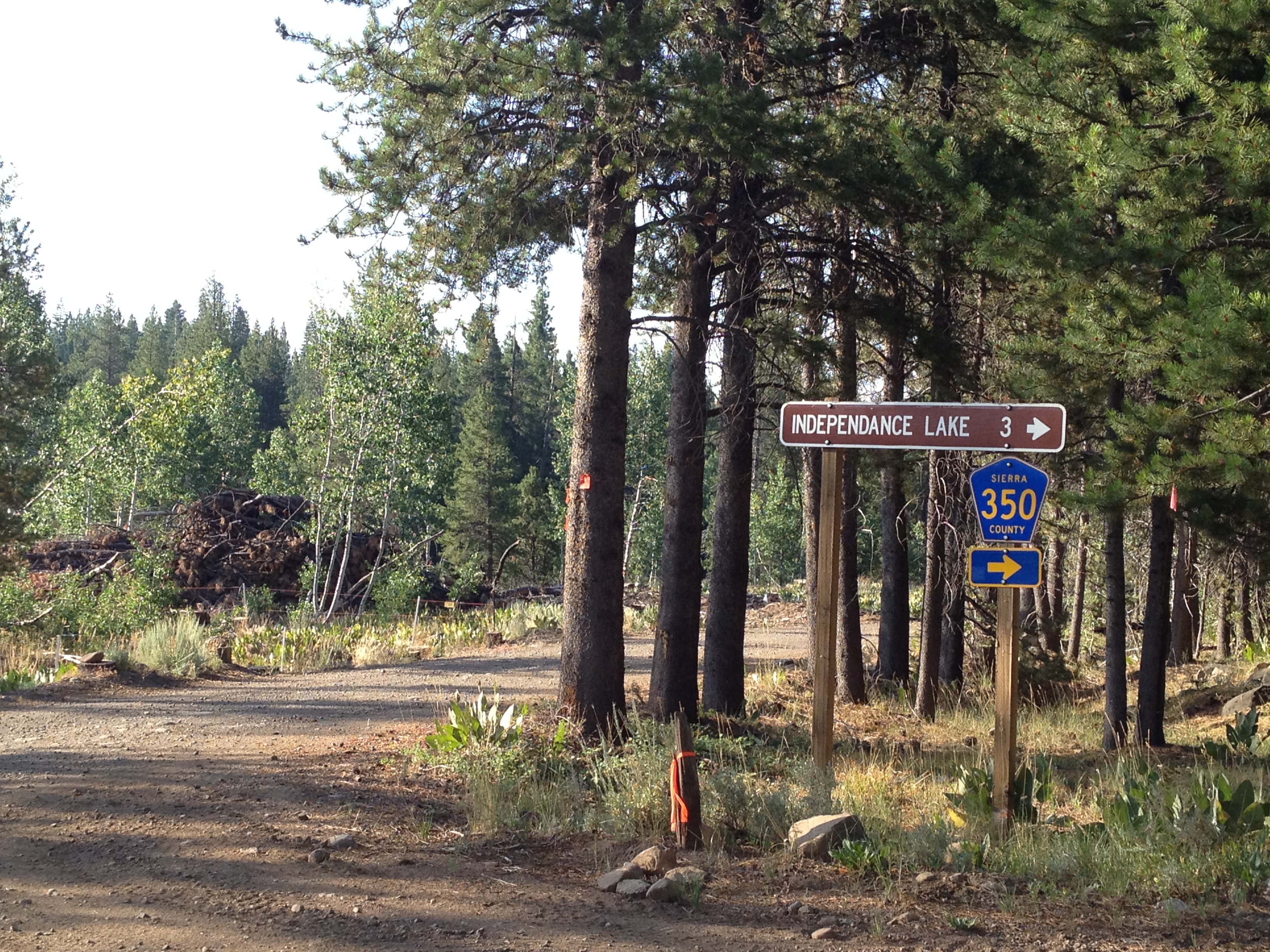 •Bear left and stay on paved road for 1.5 miles. Turn Left/South at sign for “Independence Lake – 5 miles.”