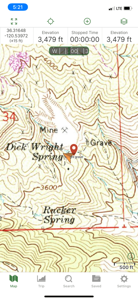 During my recent visit to Clear Creek, I made a quick side trip, just before sunset, to visit Dick Wright. He was a local hermit, who lived in a crude cabin here. When he didn’t show-up in town for awhile, a local rancher went to check on him. Buried him near the cabin!