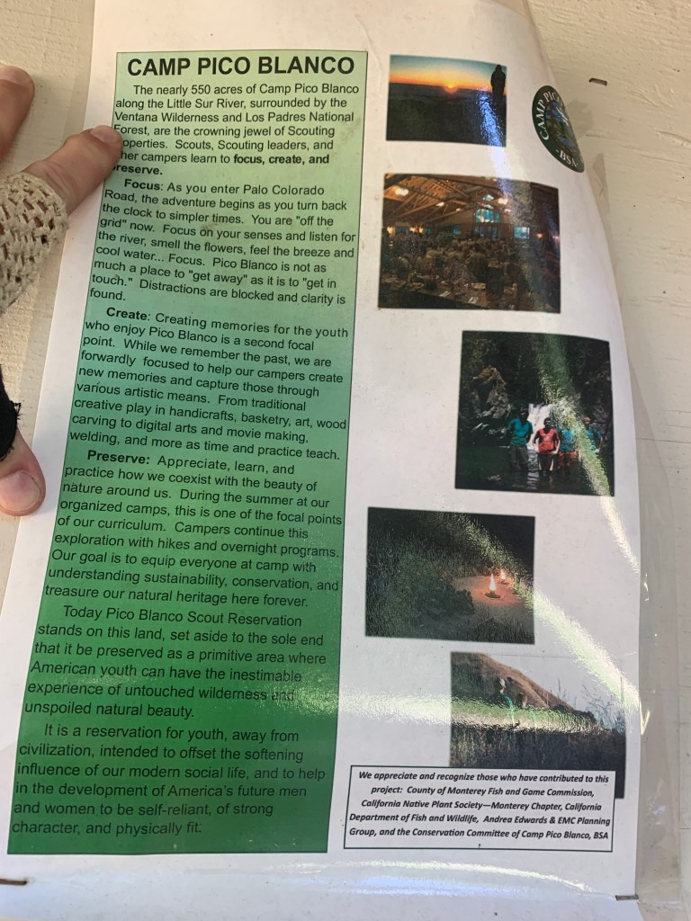Scouting has been on a long decline so this isn’t surprising. I’ve never been to the scout camp but I was the trail lead for the Ventana Wilderness Alliance’s project to improve the trail from the Coast Road up the Little Sur River to Pico Blanco Public Camp. After the 2008 fire destroyed almost the whole trail I became discouraged and abandoned it. There is a beautiful waterfall and swimming hole at the Public Camp.
