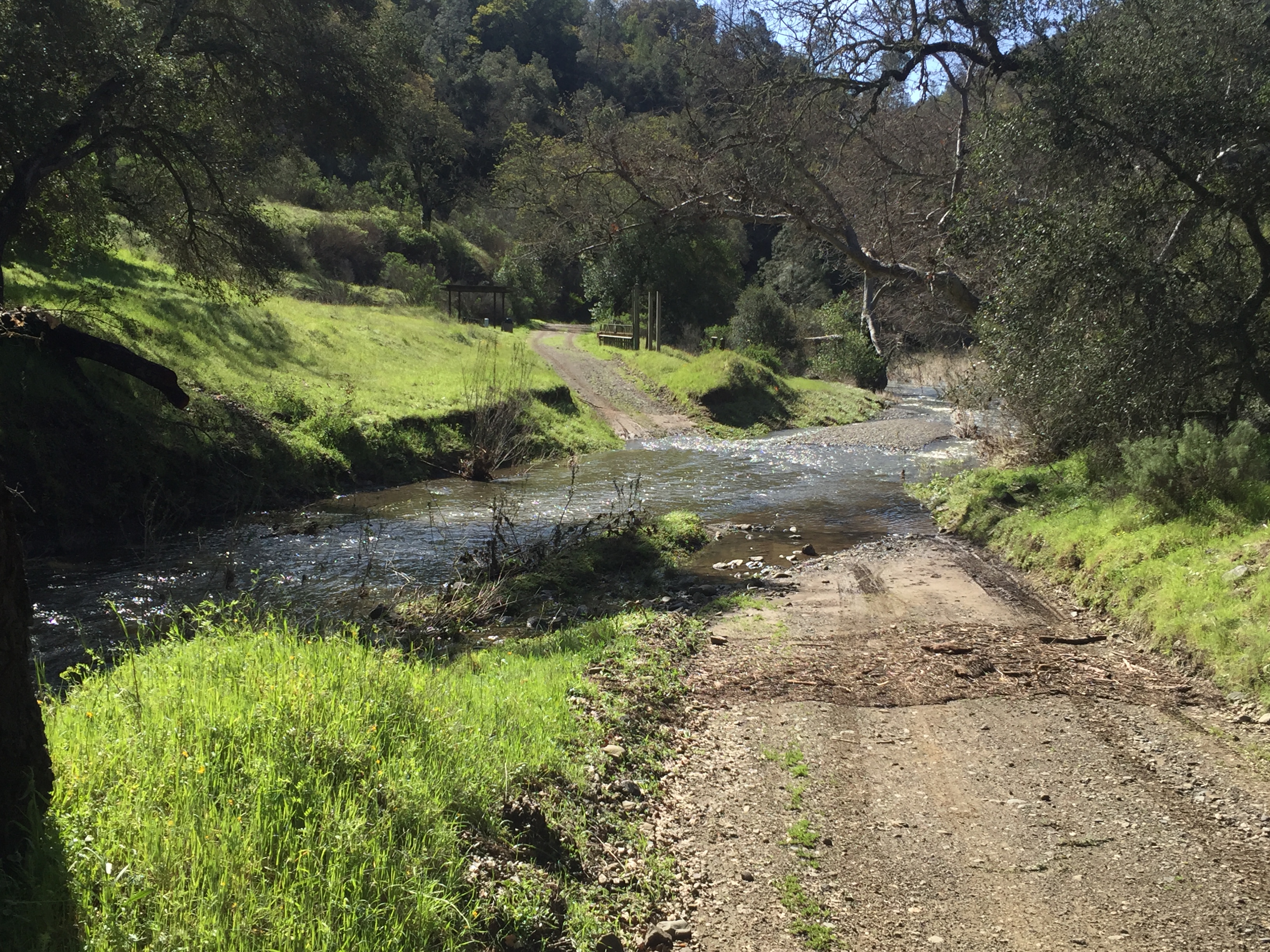 First creek crossing on Coit Road. This is usually dry, but now 4 inches deep and 20 feet wide.