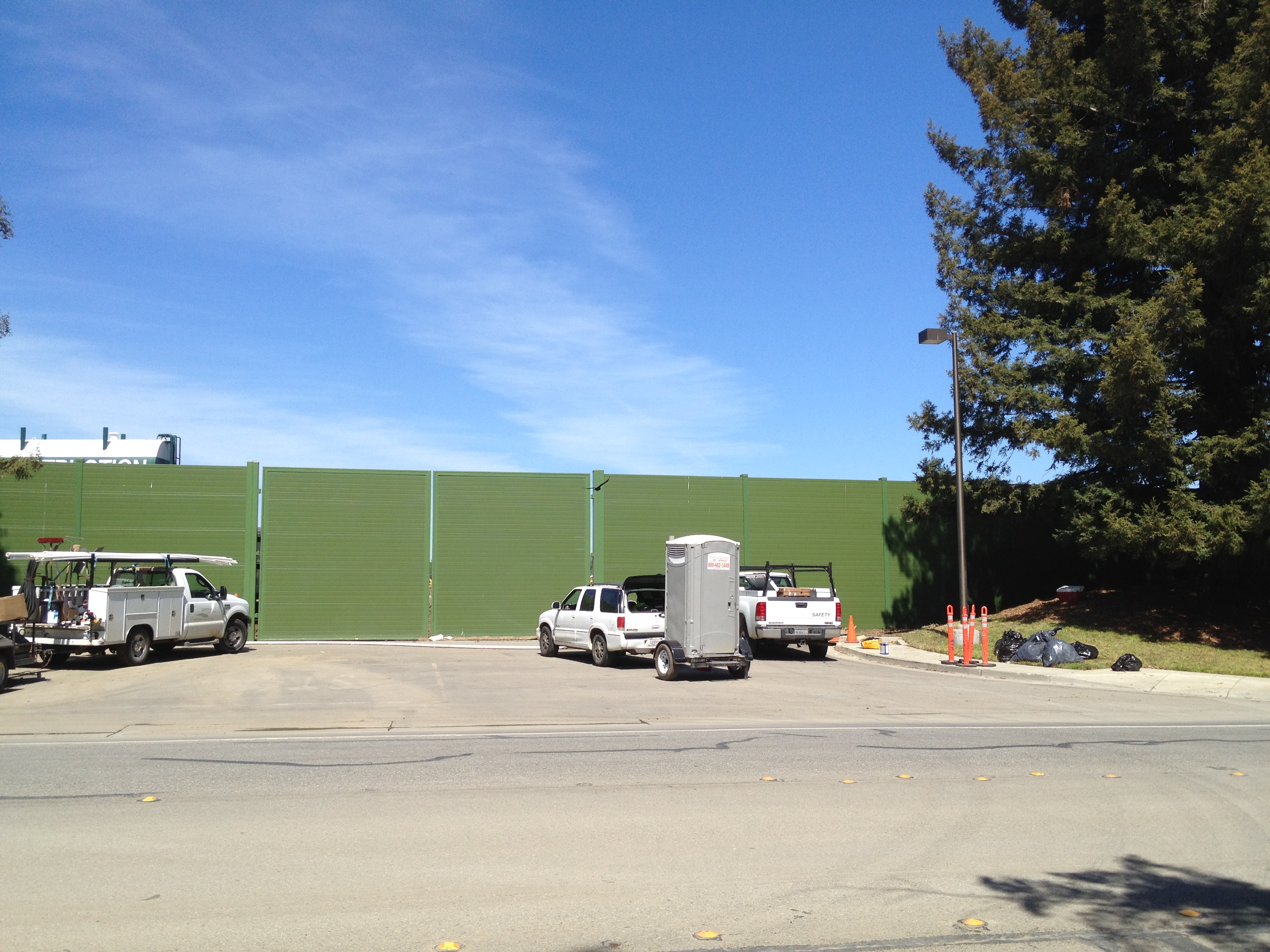 Last, but not least, along the eastern edge of the tracks, a bit south of Vahls, lies the crumbling H.G. Wade warehouse and the neglected home next door. You may have already spotted the warehouse, depending which way you entered town. Several “Western” movies were said to have been partly filmed at this warehouse. (The house is behind the green tarp. It used to be more visible, including when Eric took photos: http://www.sanjose.com/underbelly/unbelly/Alviso/hornhouse.html )